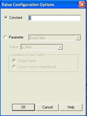 Secondly the actions for which the user shall be setting parameters need to be given the same name as in the imported excel file. As shown below, while recording the file the user has selected a particular value for the Action which he wants to parameterize which will appear in the constant option.